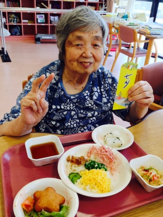 デイサービスでは、七夕ということで、おそうめんと星形のコロッケを美味しく頂きました♪