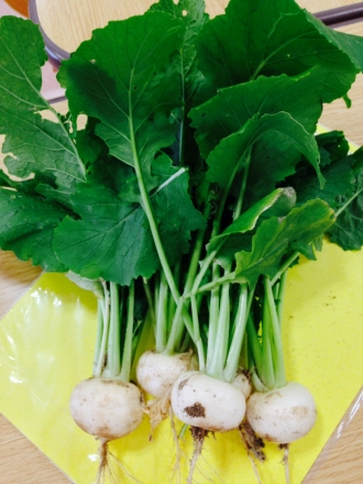 今日の昼食では、とれたカブを甘酢和えにして皆で頂きました。とても美味しまったです(*^_^*)