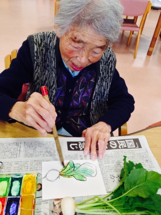 画材はデイの畑で採れたカブと大根(*^_^*)