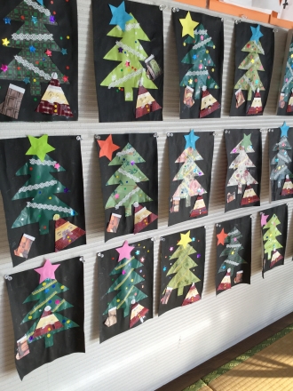 クリスマスツリーを飾りつけし、サンタクロースと靴下を貼りました。 それぞれ個性があり 可愛く仕上がりました(*^。^*)