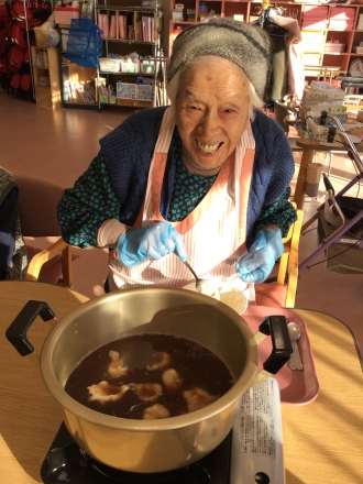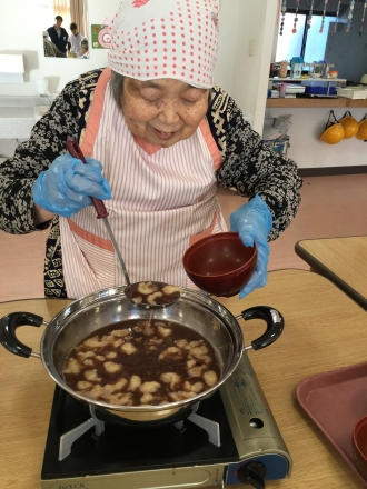 本日のおやつ作りは小麦粉団子入りのお汁粉でした。