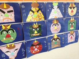 2月の節分をイメージして、鬼を貼り絵し思い思いに表情をつけてみました(*^_^*)