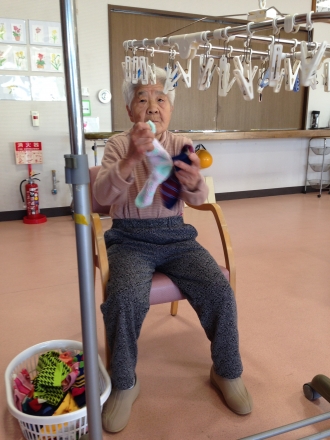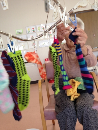 そこで、予定していたレクリエーションを変え、洗濯物干しゲームをやってみました。