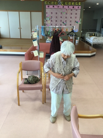 ボタンをはめたり、袖を通すのに苦戦しておられましたが、楽しく行いました。