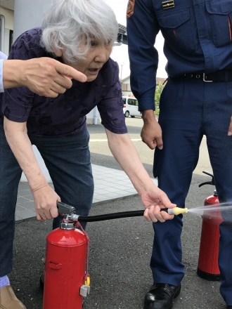 火事を想定して、避難訓練と消火活動をしました。