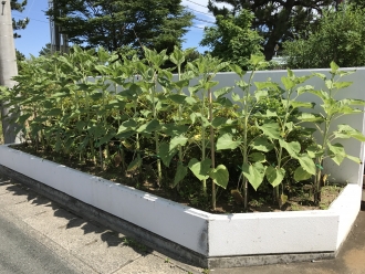 デイサービスの外に咲いている向日葵の