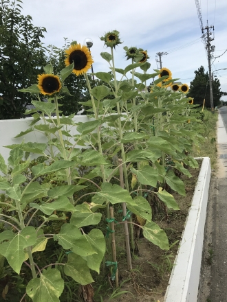 デイ入口のひまわりが花開きはじめました