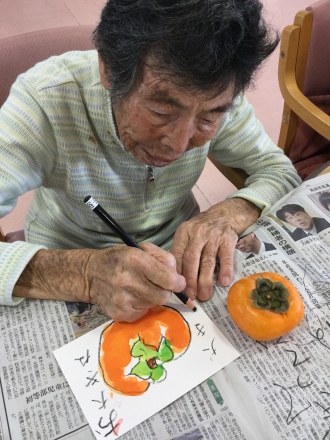 秋は画材がたくさんあり、何を描こうか迷いました。職員も一緒になって楽しんでいます♪