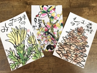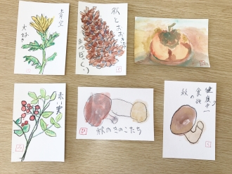 秋のものを題材に絵手紙教室の開催です(^_^)/
