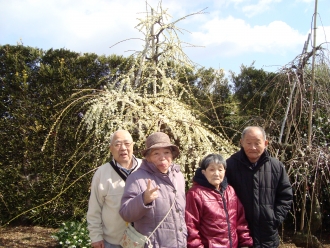 舘山寺大草山の昇龍しだれ梅を見に行ってきました。しだれ梅は満開で、白・紅・薄ピンクの上品な花が咲き乱れ、良い香りを漂わせていました。皆様「すごくキレイだね。とってもいいね。」と感動され喜んでいました。