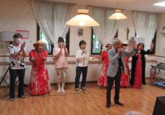 里芋の会の皆さんが慰問に来てくれ、踊り、歌、手品などを披露してくれました。普段見る事ができない演目を見る事ができ、皆さん大変喜ばれました。